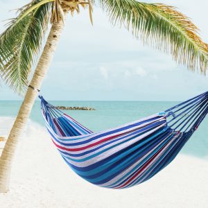 Τοποθετείται εξαιρετικά εύκολα , ώστε να μπορείτε να ξεκινήσετε αμέσως να χαλαρώνετε! Μπορεί να ρυθμίσει τις επιλογές ύψους, ώστε να μπορείτε να επιλέξετε την τέλεια θέση σας! Η αιώρα είναι κατασκευασμένη από υψηλής ποιότητας, ανθεκτικό στις καιρικές συνθήκες νάιλον και πολύχρωμο βαμβάκι, το οποίο δεν τεντώνεται ούτε σκίζεται υπό πίεση. Πρόκειται για ένα εξαιρετικό προϊόν για κομψή χαλάρωση σε εξωτερικούς χώρους ή για να τονίσετε το κατάστρωμα της αυλής σας.