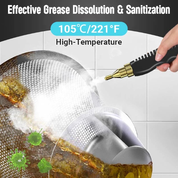 Η ονομαστική ισχύς 2500W παράγει ατμό έως 105℃ σε λιγότερο από 10 δευτερόλεπτα, απομακρύνοντας γρήγορα λίπη, βρωμιά, σκόνη και λεκέδες από διάφορες επιφάνειες.